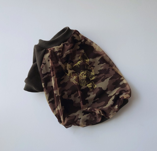 伝七商店10周年 アニバーサリーチュールトレーナー ふんわりチュールトレーナー/afternoon 伝七商店の10周年を記念して 背中にチュールをかぶせた特別なお洋服 タックやギャザーを工夫して たぷんとしたシルエットにこだわりました カモフラ模様のチュールからの伝七プリントがチラリと覗きます ダークオリーブのボディと色合わせがとても格好良くて素敵です おしゃれして一緒にお出掛けを楽しんで欲しい1着です トレーナーにシルクスクリーンで一着一着プリントしています 身頃は、裏パイルであたたか コットン100%で静電気が起きにくいです 同じ伝七プリントのオーナー様用のウェアやグッズなどもございます わんちゃんとのリンクコーデでお散歩を楽しんでください♪ [素材] 生地:綿100%(裏パイル) チュール:ポリエステル100% お知らせ : 2026/2/1より商品価格とは別に 全国一律250円の送料がかかります (クリックポストで発送します) 一部商品や、時間帯指定ご希望の場合 宅配便で発送するため、地域別送料がかかります ご了承くださいませ ご購入された方はメッセージで、「ご注文されたかたのお名前」と「注文したよ」といれていただければ、発送のお知らせもこちらからメッセージいたしますので、ぜひお声がけください♪ メールが届かないケースが多くございますので、ぜひメッセージをご利用くださいませ 犬服の店 伝七商店ショップサイト https://den7sho-ten.net ※当店のお洋服は、ひとつひとつ手づくりでお作りしております 他のショップでも取り扱っておりますため、在庫が前後する場合がございます 在庫切れの際は、キャンセル(返金、交換等)の対応させていただきます 何卒、ご了承くださいませ