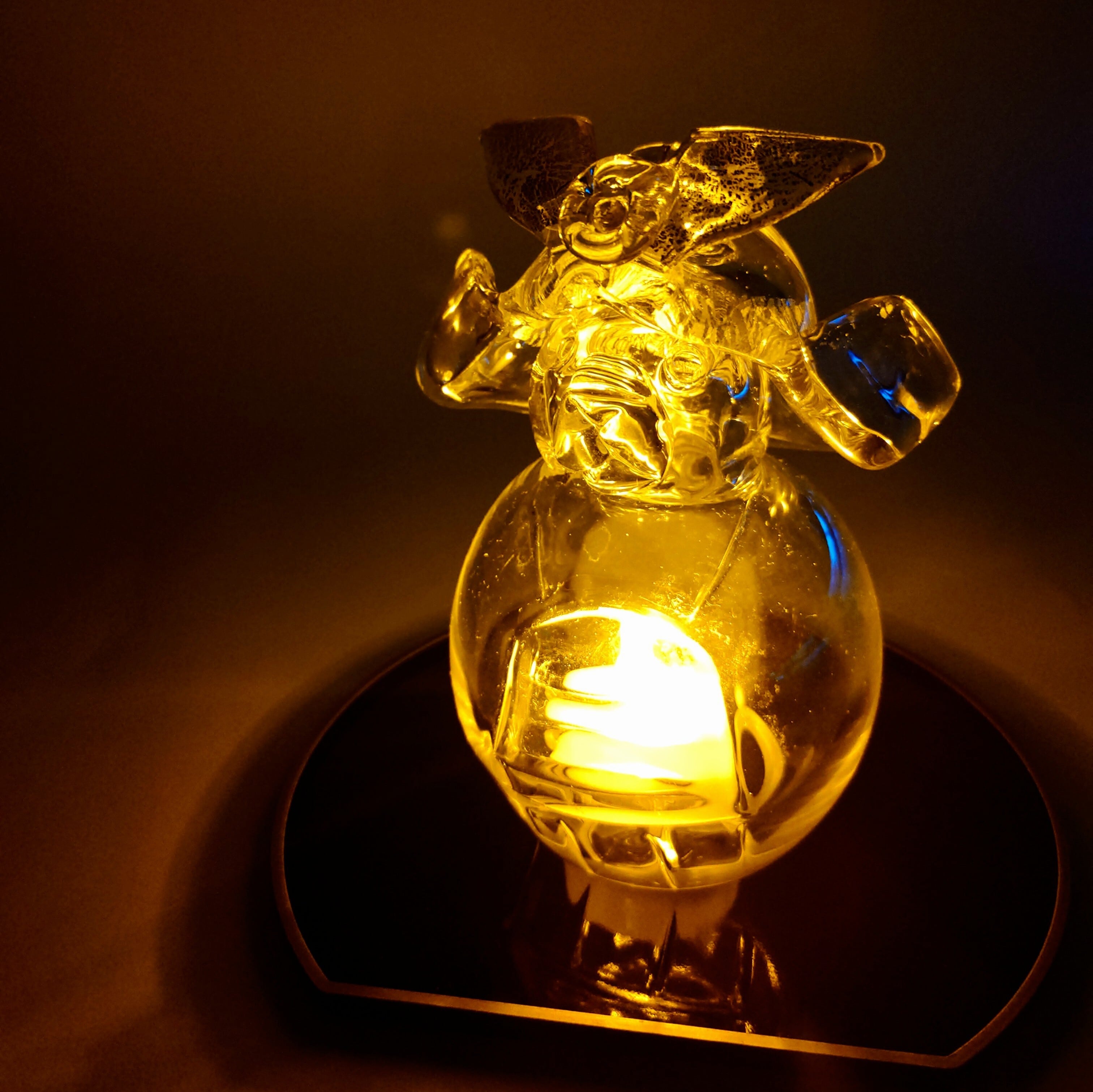 兜をかぶったフレブルを模したガラスのキャンドルライト♪