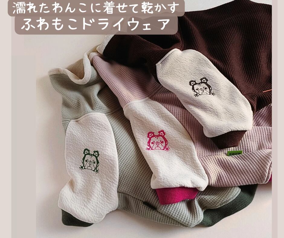 ふわもこドライウェアを着せてやれば、お風呂後のケアが格段に楽に♪