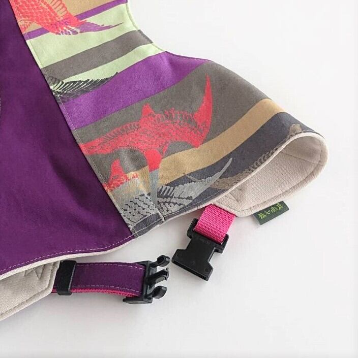 絵柄とムラサキ色の生地を切り替えたデザイン