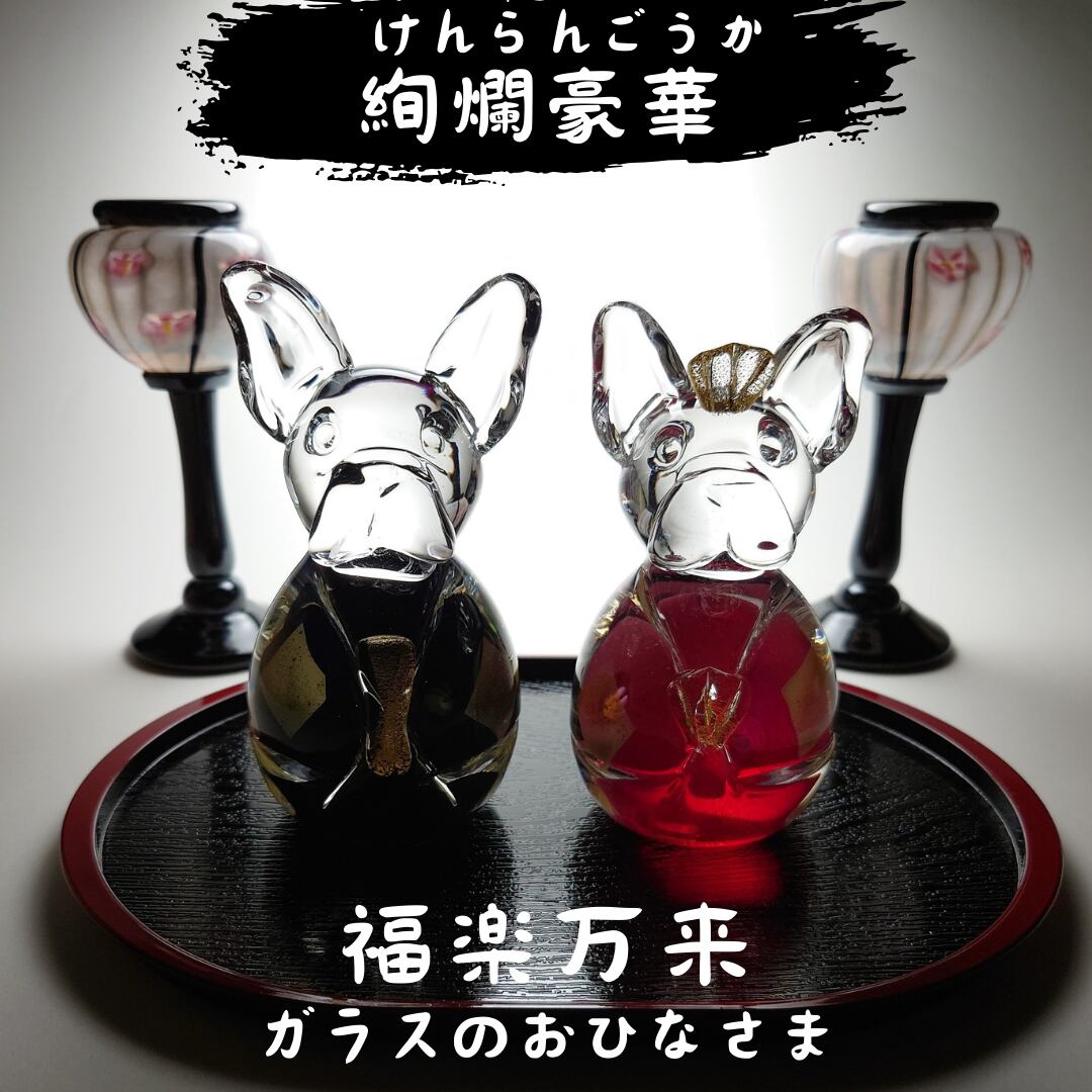 彩色ガラスのおひなさま/金箔・色細工/黒のぼんぼりセット【限定販売】