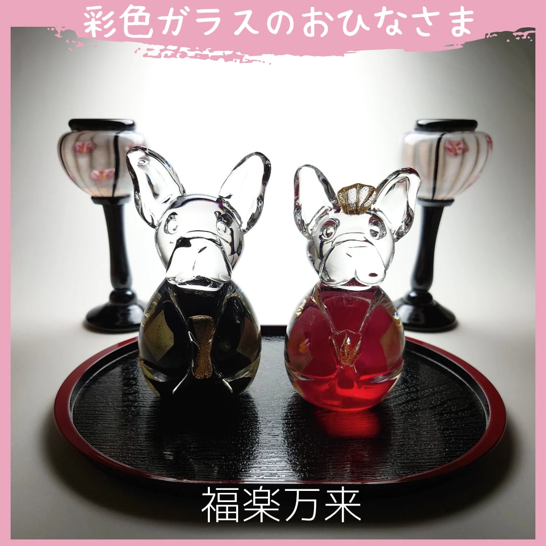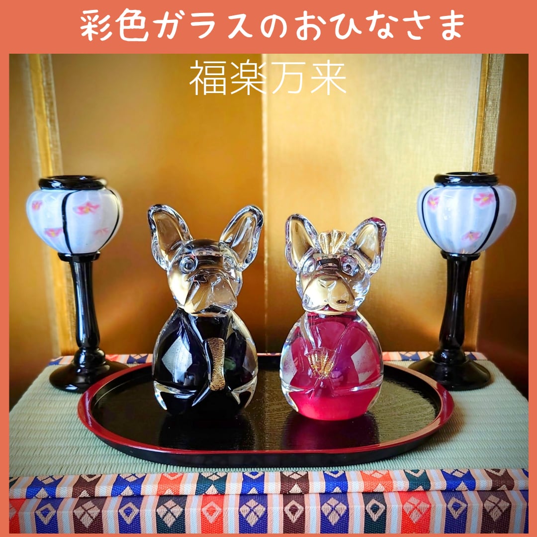 男雛女雛それぞれ違う色ガラスでお着物を表現!